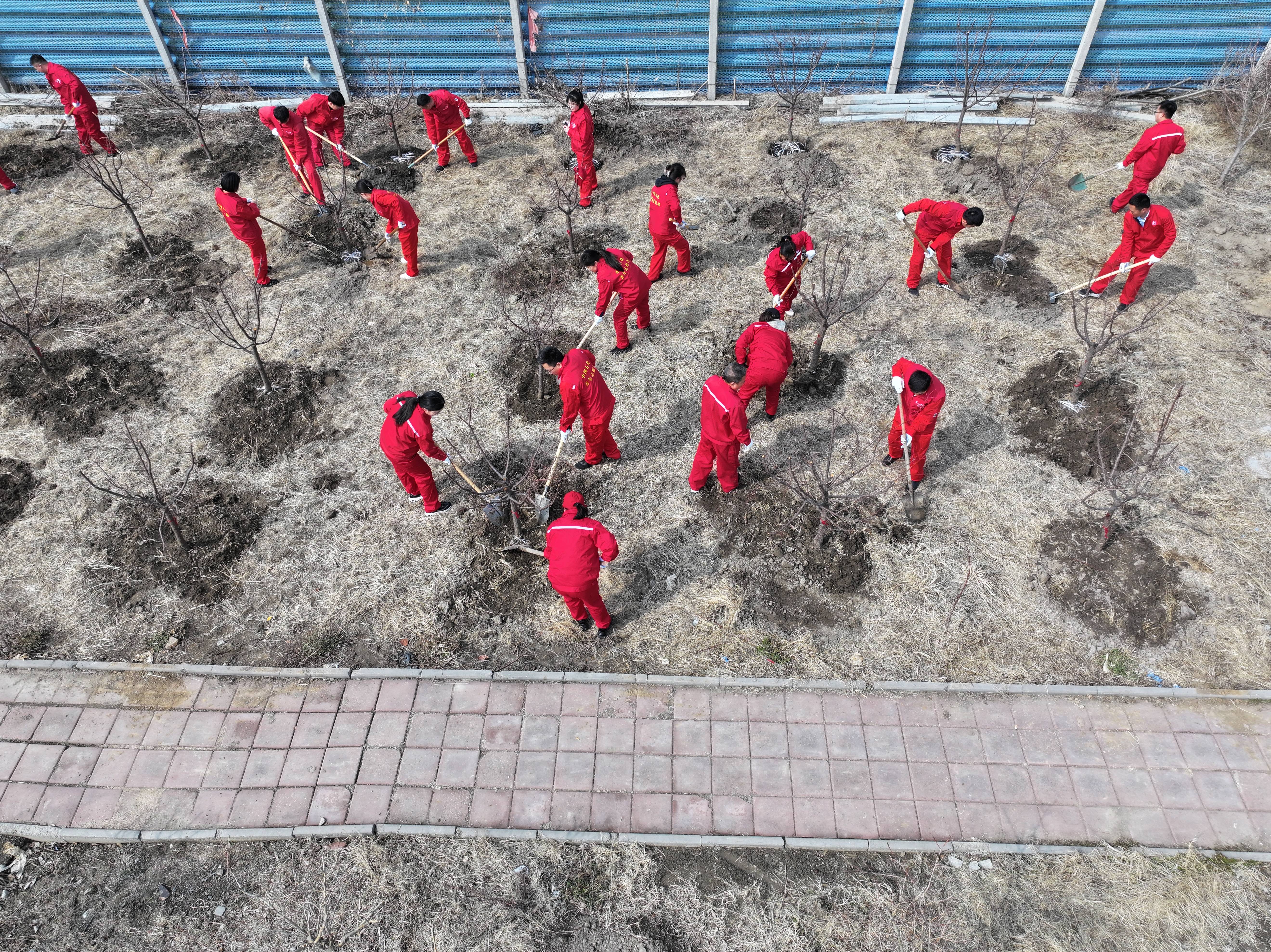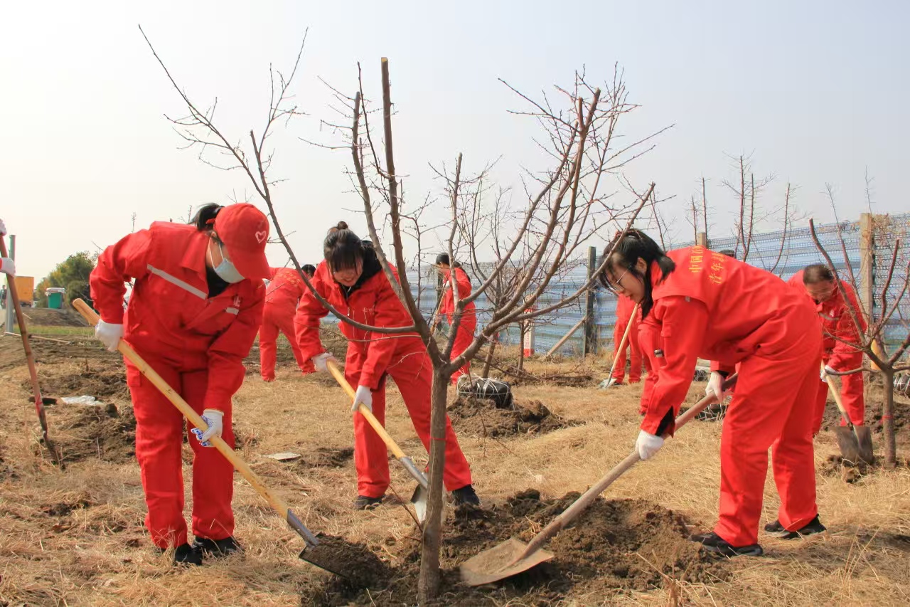 日前,中国石化天然气分公司山东省天然气管道有限责任公司淄博输气管理处的40余名员工分别在辖区临淄末站、周村站、临淄站、莱芜站开展2026年度义务植树活动,为初春的场站披上绿色新装。