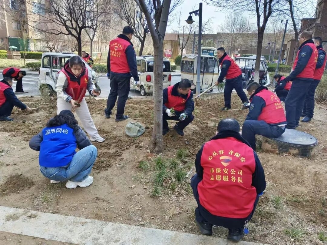 商东社区联合淄博市保安公司开展“红色星期六”志愿服务活动。志愿者们来到里程花园小区广场,分工协作、挥锹培土,认真铺设种植草地,以实际行动美化家园环境。此次活动凝聚共建力量,践行绿色环保理念,为居民打造更整洁舒适的居住空间,彰显志愿服务精神。