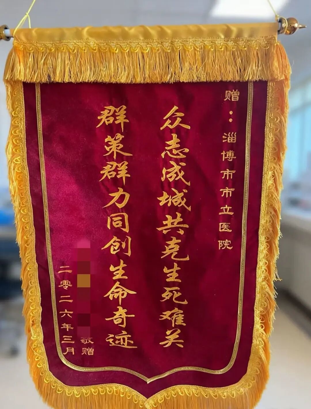 2026年春三月,一面锦旗被送到了淄博市市立医院。送锦旗的人,是一位刚刚从死神手中被抢回来的患者老张(化名)。