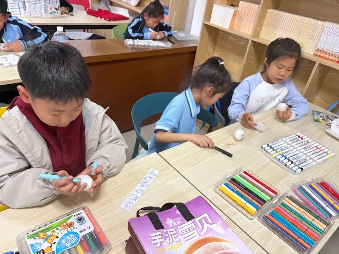 活动现场,五彩斑斓的画笔整齐排列,一个个圆润光滑的鸡蛋壳,则成为了孩子们发挥创意与想象力的绝佳画布。小朋友们围坐在一起,眼神中满是兴奋与期待。随着活动正式开始,孩子们纷纷拿起画笔,在鸡蛋壳上尽情挥洒创意。有的小朋友画下了可爱的卡通人物,那大大的眼睛、灿烂的笑容,仿佛要从鸡蛋壳上跳跃出来;有的小朋友描绘了美丽的花朵,娇艳欲滴的花瓣、嫩绿的叶子,让人仿佛置身于春日的花海之中。孩子们互相交流,分享着自己绘画的思路和技巧,现场气氛热烈而温馨。
