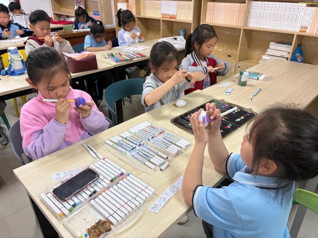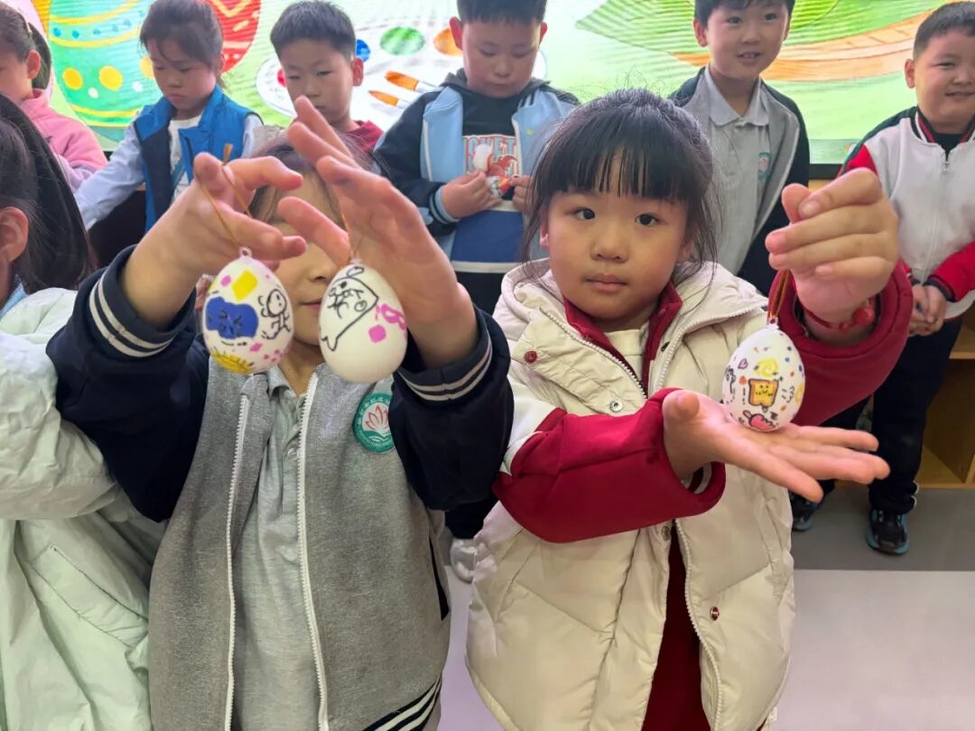 经过一番努力,一个个原本普通的鸡蛋壳在孩子们的巧手下变成了精美的彩蛋。这些彩蛋有的精致细腻,有的活泼俏皮,看着自己亲手绘制的彩蛋,孩子们的脸上洋溢着自豪和喜悦的笑容。