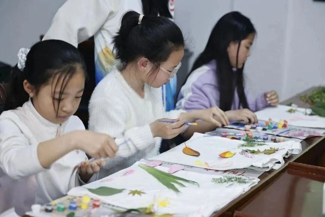 “首先我们要挑选自己喜欢的叶片,尽量选完整的、没有破损的,这样拓印出来的图案才好看......”孩子们听得专注、做得认真,大胆发挥想象力,将春日草木的印记留在帆布包上,用独特的方式留住春天,在手工创作中收获快乐与成长。