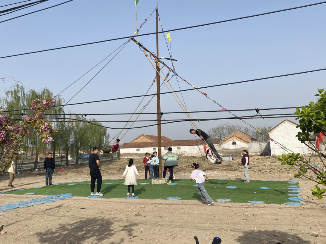 活动当天,现场处处洋溢着欢乐的氛围,欢声笑语此起彼伏,勾勒出一幅其乐融融的乡村春日图景。秋千架下,男女老少齐聚一堂,共享这份春日美好。孩子们按捺不住内心的喜悦,争先恐后地坐上秋千,在家长轻柔的助力下,迎着春风轻轻荡漾,纯真的笑容在脸上尽情绽放;年轻人趁着兴致,尽情体验荡秋千的乐趣,在一摇一荡间舒展身心,卸下平日的压力与疲惫;老人们则围坐在一旁,看着眼前热闹的场景,一边追忆儿时清明荡秋千的美好回忆,一边与邻里闲话家常,话语间满是邻里相伴的温情。