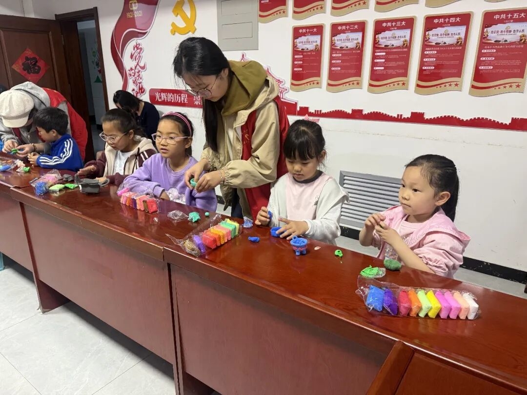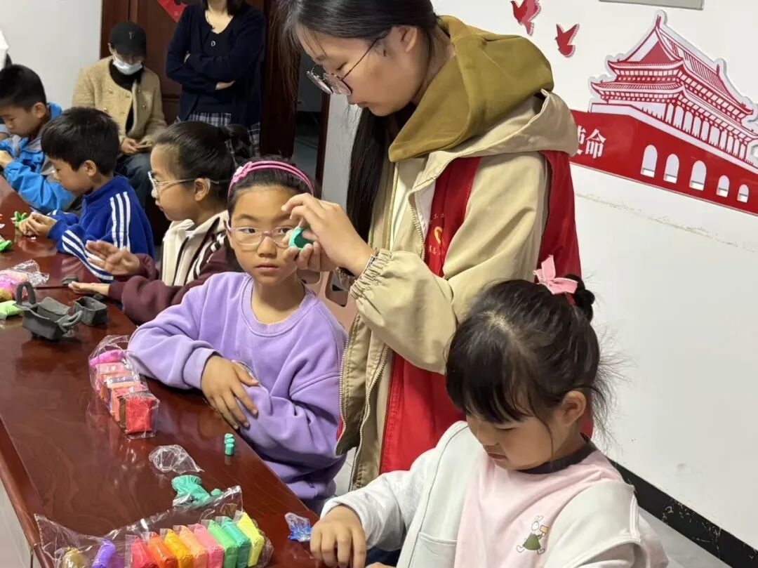 创作过程中,孩子们兴致高昂、专注投入,小手翻飞间,一块块陶土被赋予了古韵与创意。有的孩子认真复刻经典青铜鼎造型,细致勾勒纹路;有的孩子发挥奇思妙想,在传统造型基础上加入自己的创意,打造出独一无二的“专属青铜鼎”。志愿者们全程陪伴在侧,及时提供指导和帮助,鼓励孩子们大胆尝试、大胆创作,在动手实践中感受传统文化的魅力。