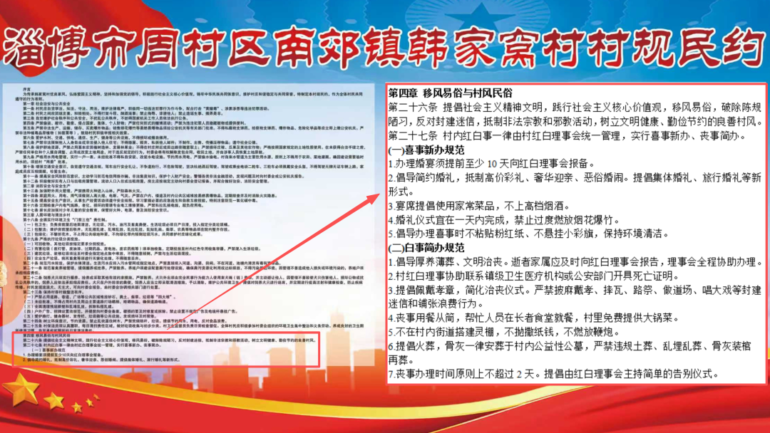 韩家窝村以党建为核心引领,充分发挥基层党组织战斗堡垒和党员先锋模范作用,将白事简办、喜事新办等移风易俗要求纳入村党组织重要议事日程和村规民约。通过党员带头签订移风易俗承诺书、参与志愿服务,带动村民积极响应,形成“党员先行、群众跟进”的良好局面,为移风易俗工作提供坚实组织保障。