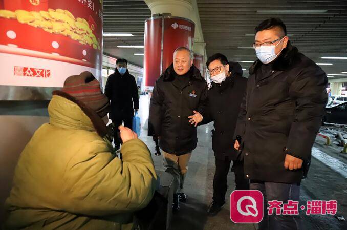 为确保元旦假日期间流浪乞讨人员和临时遇困人员得到及时救助,为露宿街头的生活无着人员送上关心和温暖。12月31日,在元旦前夕,淄博市民政局主要负责同志、和市救助服务中心、张店区民政局有关领导还有淄博市城际救援队的队员们一起冒着零下14度的严寒,满载御寒衣被、食品、药品等救助物资,前往淄博中心城区车站、繁华地段、桥梁涵洞、在建工地等重点区域进行寻访,用浓浓温情,为露宿的流浪人员、临时遇困人员和困难群众送去节前的问候。