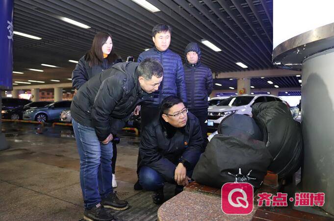 低温让很多务工人员躲进各处24小时自助银行里,夜查人员一路走、一路看、一路问,关注着城市路边的每一个角落。21:30许,淄博市民政局、市救助服务中心、张店区民政局、市城际救援队组成的联合夜查小组,来到了淄博火车站,对售票厅、广场、地下通道、公共洗手间等可能存在露宿人员避寒的地方做了细致的排查和梳理。