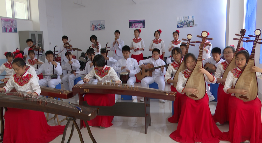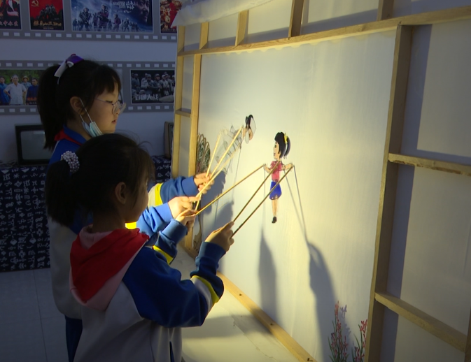 继续关注全市中小学庆祝建党100周年艺术展演暨第23届百灵艺术节备战情况,今天我们去博山。这次博山区四十亩地小学积极从传统文化方面着手选送节目。在学校的传统文化展览馆里,同学们不光可以跟老师学剪纸,还可以进行皮影戏表演。