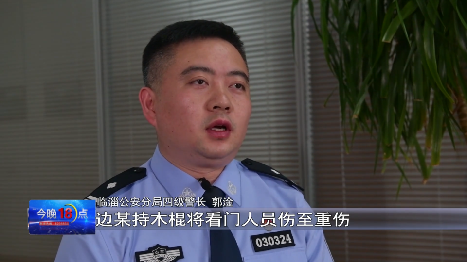 临淄公安分局四级警长 郭淦:在盗窃过程中被看门人员发现,然后转化为抢劫,边某持木棍将看门人员伤至重伤。