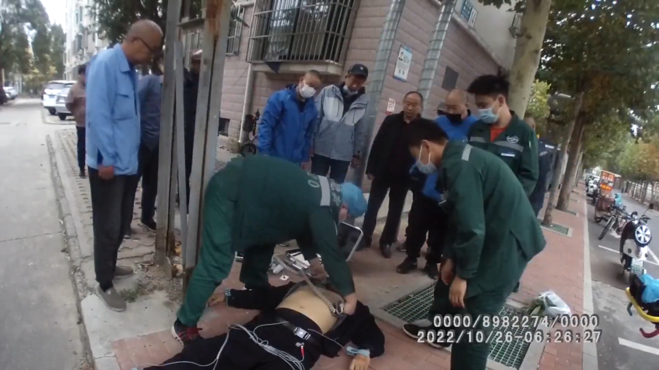 市民 高旭卫:给他做了三个循环,慢慢他就有了生命体征了,看了看我就把他衣服给他拉好,就等救援了。待了一会120还没来的情况下,他又一次晕了,又一次摸了下没有呼吸了。 我就又把他放下,又做了两组心肺复苏和人工呼吸。