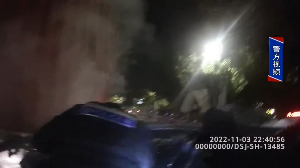 监控显示,当晚10点38分,一辆轿车与一辆拖拉机发生猛烈碰撞,轿车前部很快窜出浓烟。此时,在附近刚处理完一起警情的派出所民警听到巨响,迅速赶了过来。