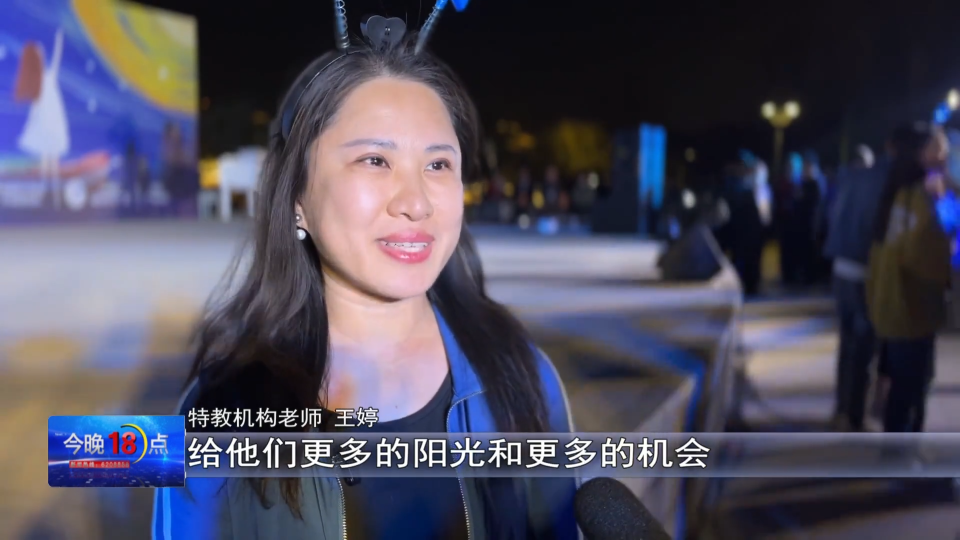 特教机构老师 王婷:我们是希望通过我们的参与,能够呼吁社会各界都来关注和关爱自闭症的群体,让我们用爱一起点亮星星的世界,给他们更多的阳光和更多的机会。