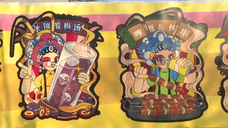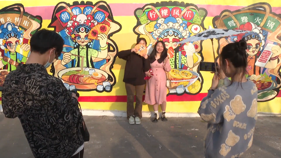 淄博职业学院艺术设计系学生 郑杰:希望用一些亮色,来吸引一下大家的眼球。结合我们专业特色,与美食、国风形成一个结合。也希望大家能来打卡。
