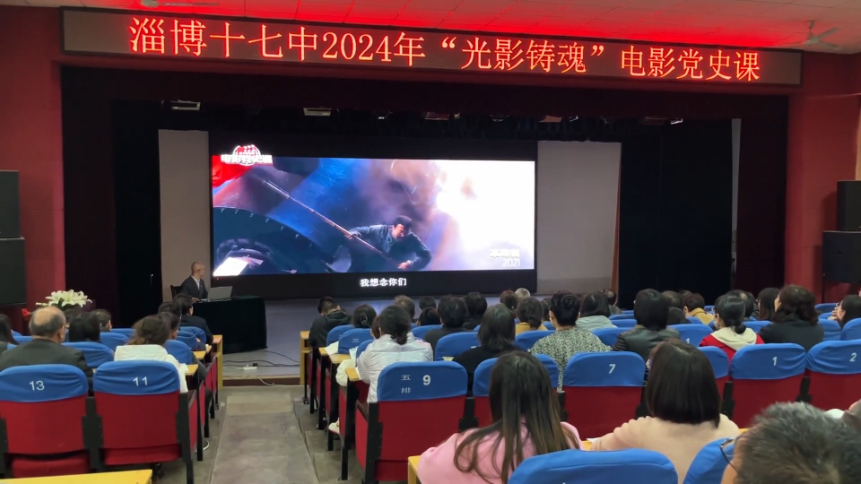3月14日,一场形式新颖的电影党课《光影铸魂》在淄博第十七中学开讲,通过回望中国共产党波澜壮阔的革命历程,激励当代教育工作者不忘初心,砥砺前行。来自淄博第十七中学的100多名党员教师现场聆听。