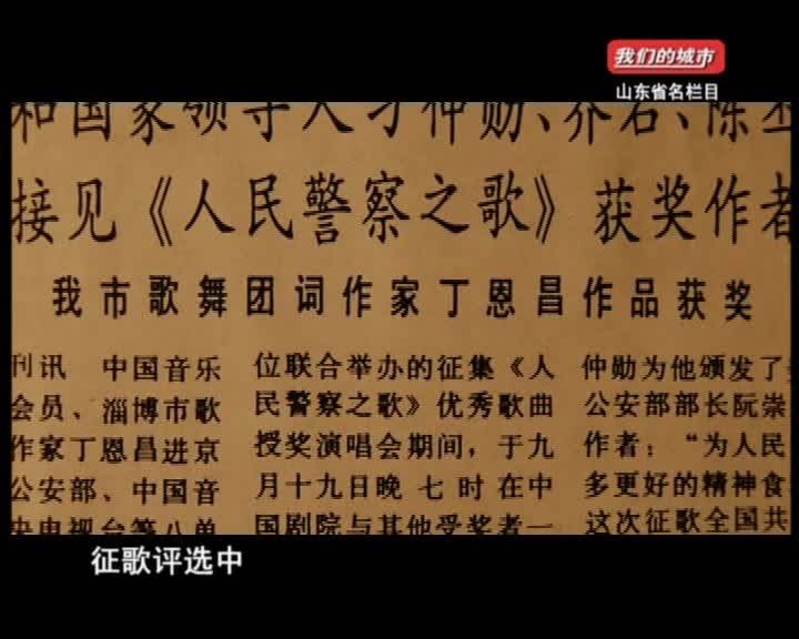 他从23岁开始写歌,四十余年创作生涯,他发表了《军民齐绣红太阳》、《我的家乡在山东》等400多部作品,与施光南、臧东生等众多作曲大家合作,彭丽媛、李谷一等众多歌唱家演绎其作品。如今的他,辛勤劳作,只为祖国的花朵,在儿童歌曲创作的园地里,他甘心情愿做一名辛勤劳作的园丁。他就是词作家丁恩昌。
