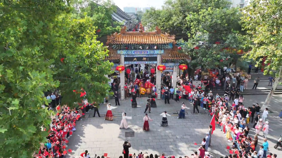 秋光如颂 全景淄博丨周村古商城用一场深情快闪,让爱国的心声,流淌在千年街巷之间。
