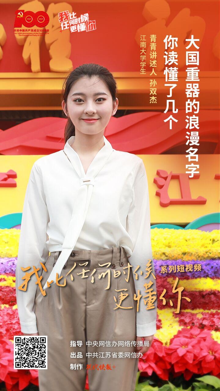 7 月 27 日," 我比任何时候更懂你 " 系列短视频第 3 集《大国重器的浪漫名字,你读懂了几个?》上线。本集青青讲述人是江南大学学生孙双杰。
