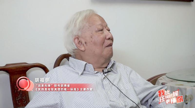 为何会加这两个字?两位青青讲述人前期已做了不少案头工作。为了更清楚了解文章的创作历程,她们还专程拜访了 86 岁的胡福明老人。胡老头发花白,眼睛也不太好,但他每天请老伴帮忙读报,了解这个世界的变化。提到当年那篇文章,胡老缓缓道来:" 文章标题的‘唯一’两个字是从毛主席的观点中分析出来的。毛主席强调,只有实践才是检验真理的标准,这个‘只有’‘才是’就说明(真理)标准只有一个。"