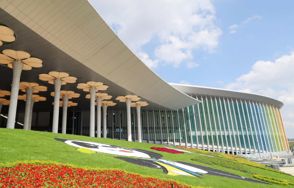 ↑2020年11月2日拍摄的上海国家会展中心南广场。