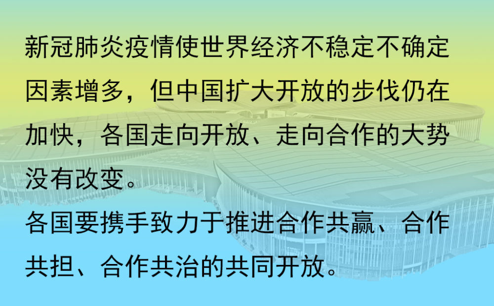 他强调,中国将坚定不移维护真正的多边主义,坚定不移同世界共享市场机遇,坚定不移推动高水平开放,坚定不移维护世界共同利益。