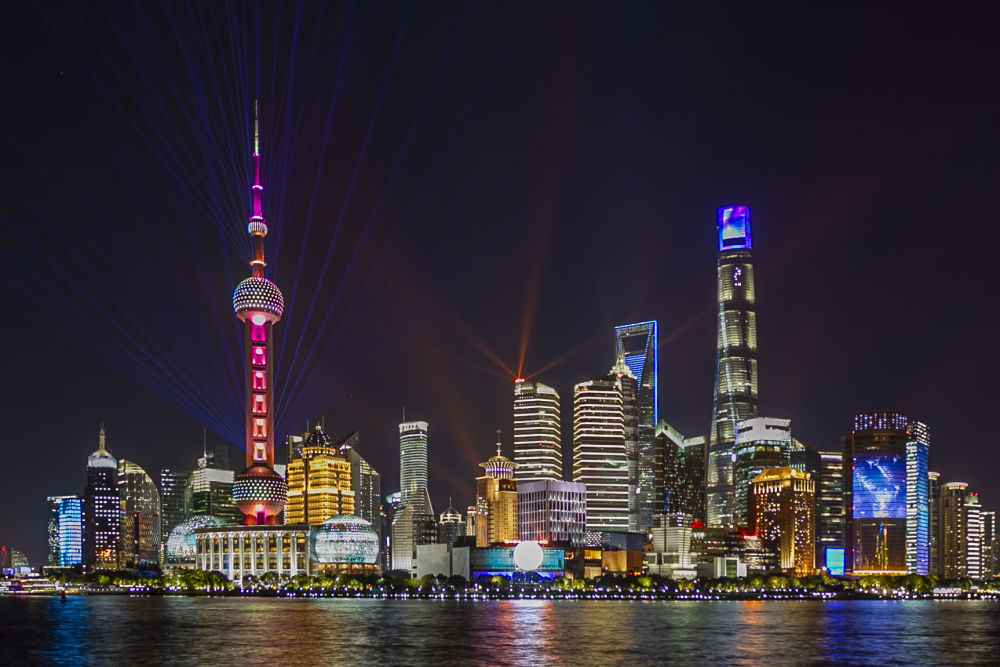 ↑2019年11月5日拍摄的上海陆家嘴夜景。