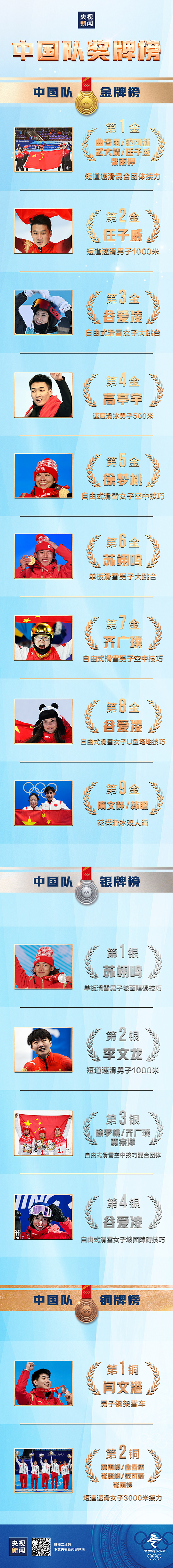 北京冬奥会中国队9金4银2铜收官,金牌数和奖牌数均创历史新高。其中钢架雪车、冰球等项目,也刷新了最好成绩。祝贺不断带给我们惊喜的中国队,为中国健儿喝彩!