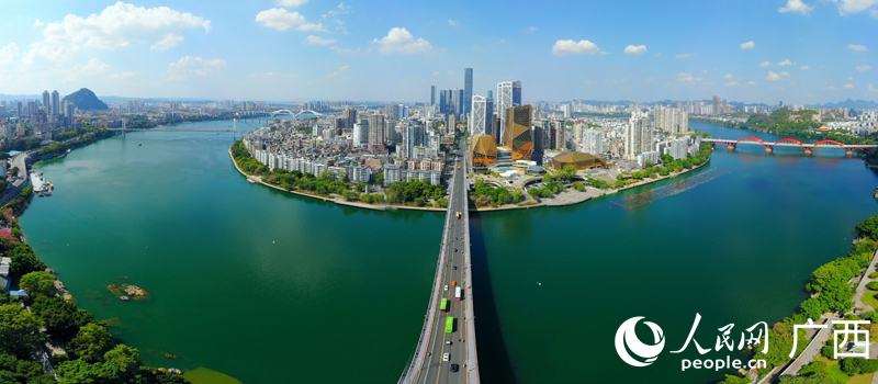 一江绿水环绕柳州。人民网 付华周摄