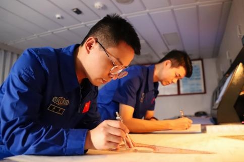 现任航海系统党支部书记蒋雷说:“我们手中的舵轮,事关任务成败,也关乎船员的生命,责任重大、使命崇高,必须一往无前、勇立潮头。”