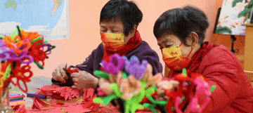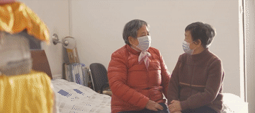 通过视频连线,同福建省福州市社会福利院的老人和护理人员亲切交流。