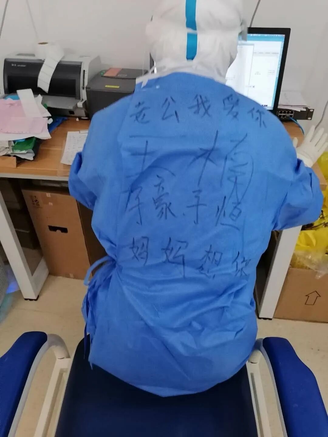 在抗击疫情的第一时间,高新区卫固中心卫生院主管护师王楠便三次向卫固医院党支部、淄博高新区地事局党委递交请愿书,强烈要求奔赴湖北一线参加救援工作,她说这是一名医护工作者的责任担当!而她的丈夫鹿帅在2003年曾以卫生员的身份参加过非典一线抗疫,那种紧迫感和责任感他深有体会。他不仅赞同妻子的这个决定,更担负起照顾两个孩子和家里老人的责任!就这样,王楠踏上了前往武汉的逆行之路!