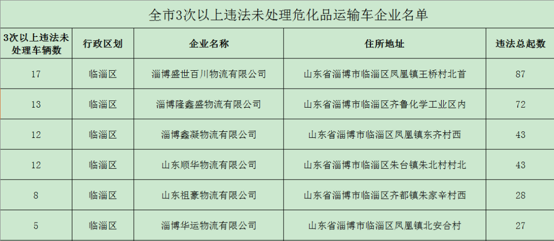约谈会上,观看守法出行警示教育片、通报淄博中租租赁有限公司等红色监管企业、山东三诚物流有限公司等10次以上违法未处理重型货运车企业、淄博盛世百川物流有限公司等3次以上违法未处理危化品运输车企业等重大安全隐患运输企业红色列管情况以及交通违法未处理情况,山东源启运输有限公司、淄博华文运输有限公司代表进行表态发言。