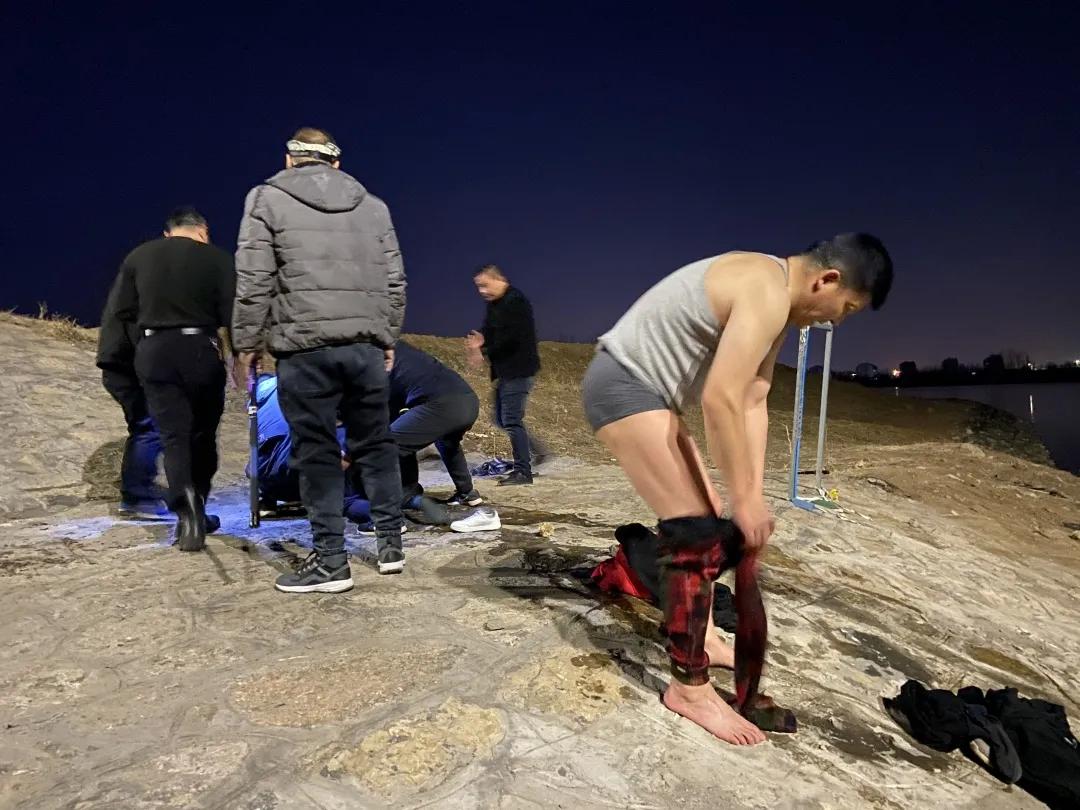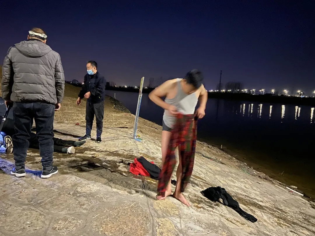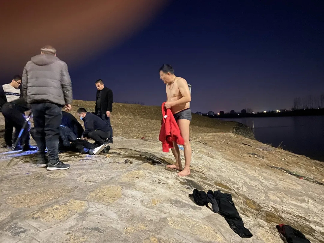 危急时刻,路过的这位男士毫不犹豫脱衣跳进河水中营救落水者。虽已入春时节,但是正月里的水温还是冰凉刺骨。赤身下水救人得有多大的勇气?