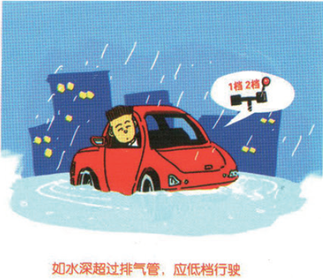 1.暴雨时,尽量避免驾车外出。如行驶途中遇有暴雨,应低速缓慢行驶,及时打开雨刮器、警示灯、防雾灯。保持足够的安全距离,变道时多观察,注意路面积水及井盖、井箅是否移位或缺失。必要时,应选择地势较高处停车避险。