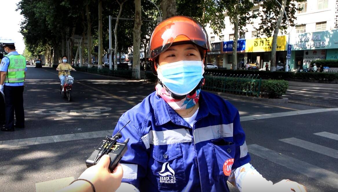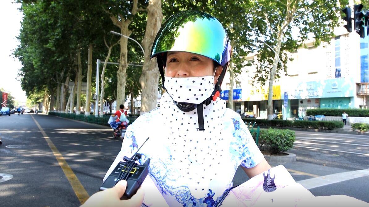 目前来说,在这个路口,我们的市民骑电动车带头盔的人数的确不多,现在我们正在加大执行的力度,积极的进行劝导。第一步先是对市民进行劝导,让大家先有这个意识,慢慢的到下一步我们要进行一定的处罚。