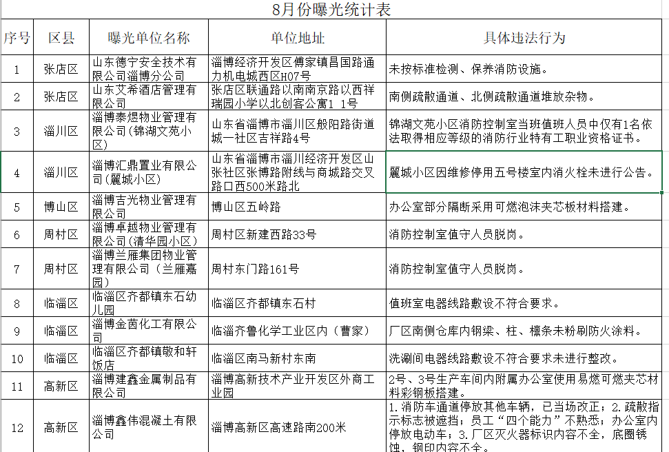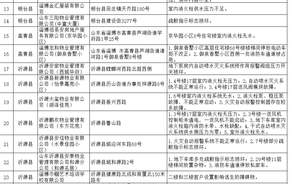 近日,淄博市消防救援支队集中曝光了一批火灾隐患和消防安全违法行为,督促全社会关注消防安全,及时消除火灾隐患。淄博市消防救援支队将继续深入推进全市火灾防控工作,持续加大火灾隐患曝光力度,形成督改火灾隐患的高压态势,坚决预防重特大火灾事故的发生,督促全社会关注消防安全,及时消除火灾隐患。