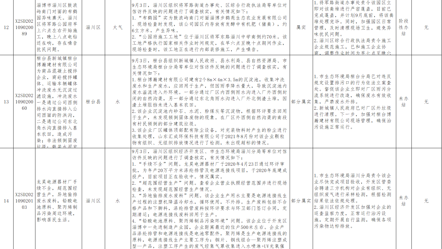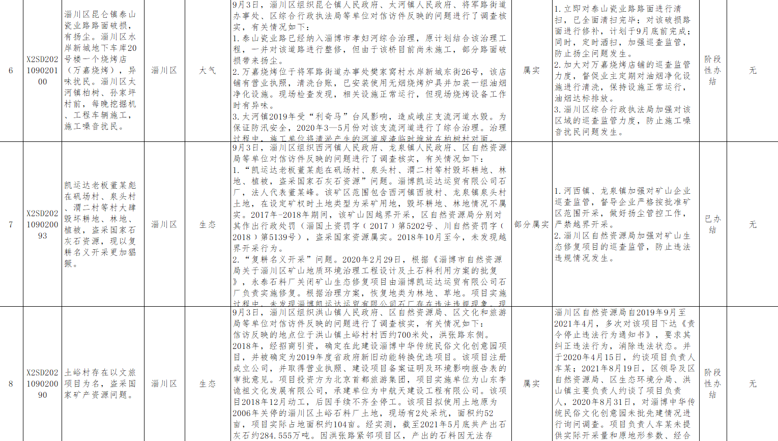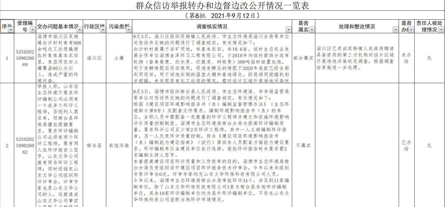 中央第二生态环境保护督察组转办信访举报件办理情况涉及淄博市情况(第八批)