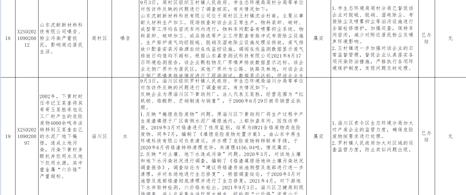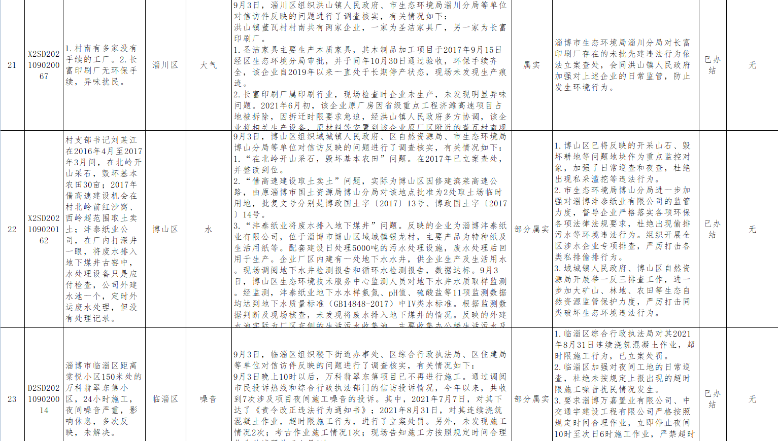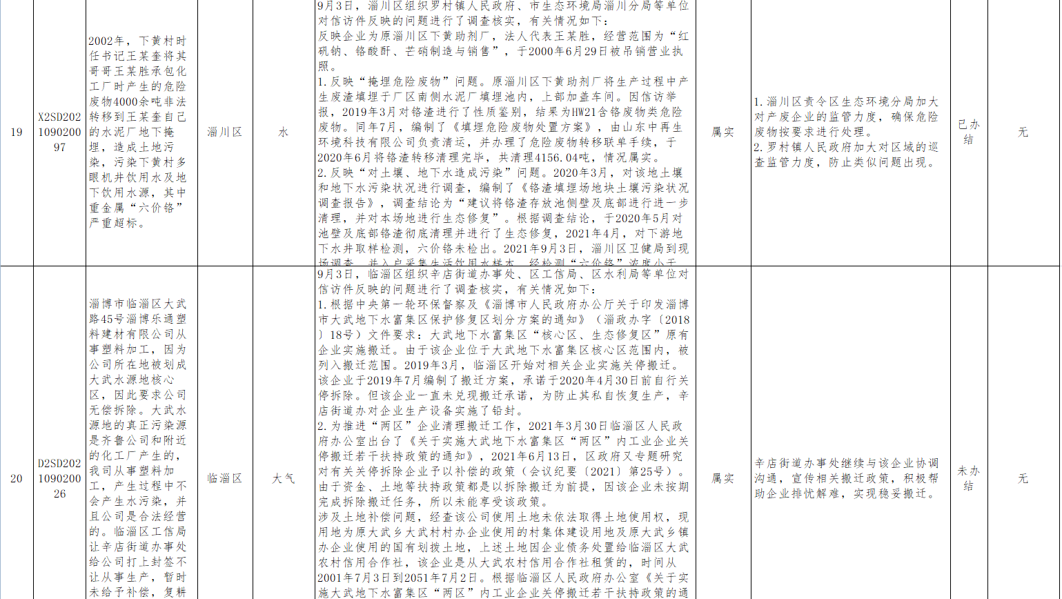 中央第二生态环境保护督察组转办信访举报件办理情况涉及淄博市情况(第八批)