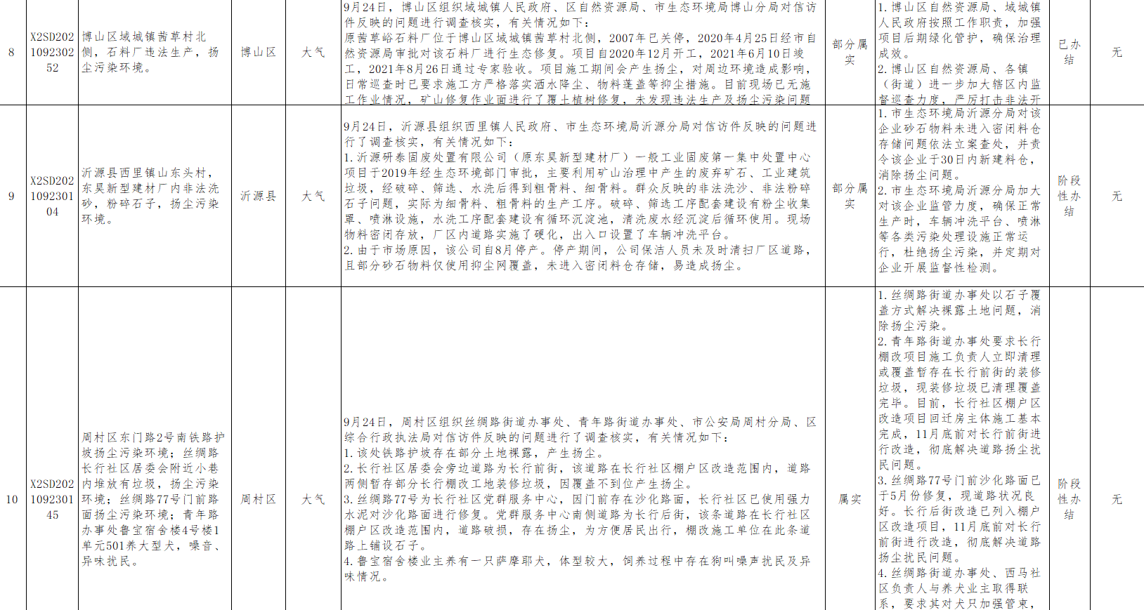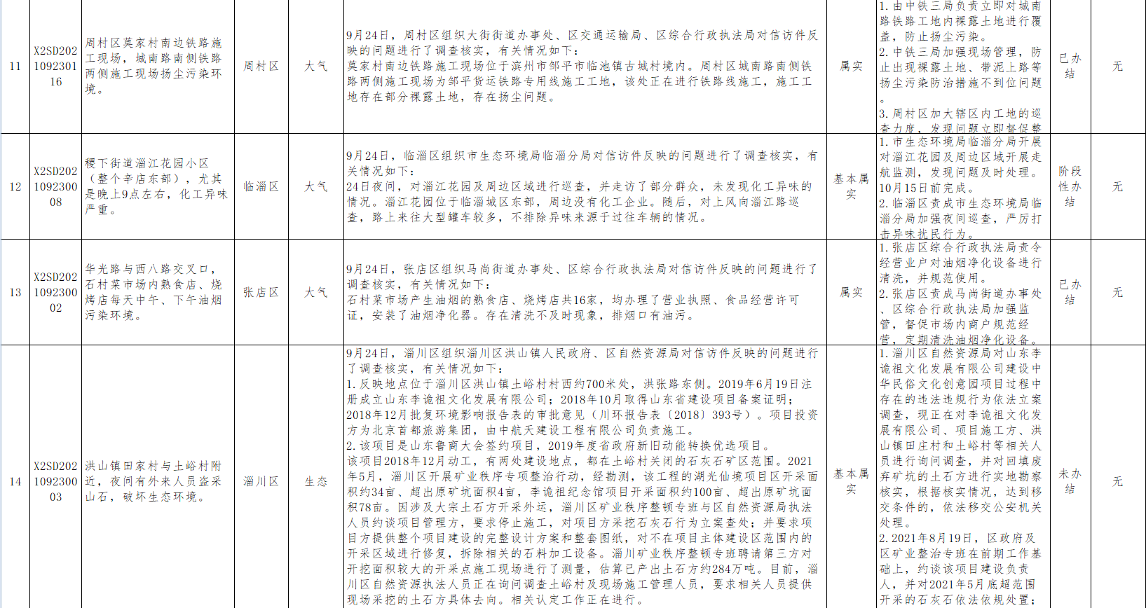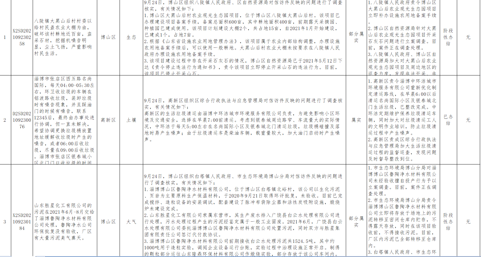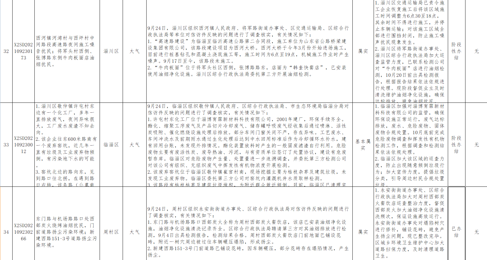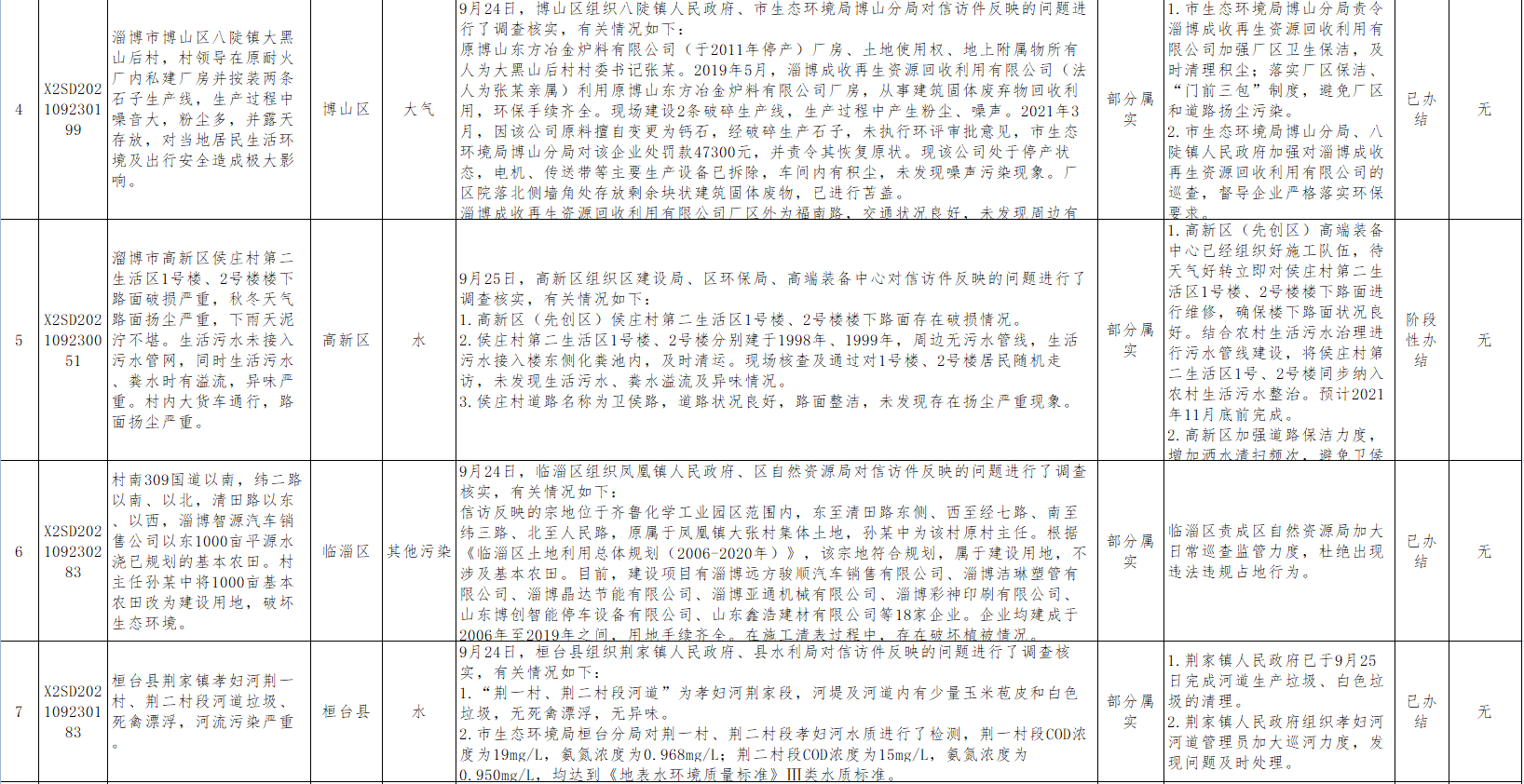 中央第二生态环境保护督察组转办第二十九批信访举报件涉及淄博市共计 36件(来电1件,来信35件)。截至10月3日,已办结16件,阶段性办结18件,未办结2件。其中,责令整改19家,现予以公开。