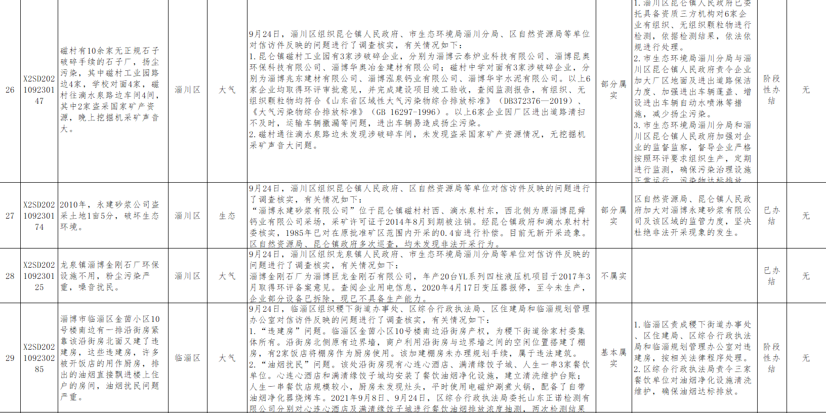中央第二生态环境保护督察组转办信访举报件办理情况涉及淄博市情况(第二十九批)