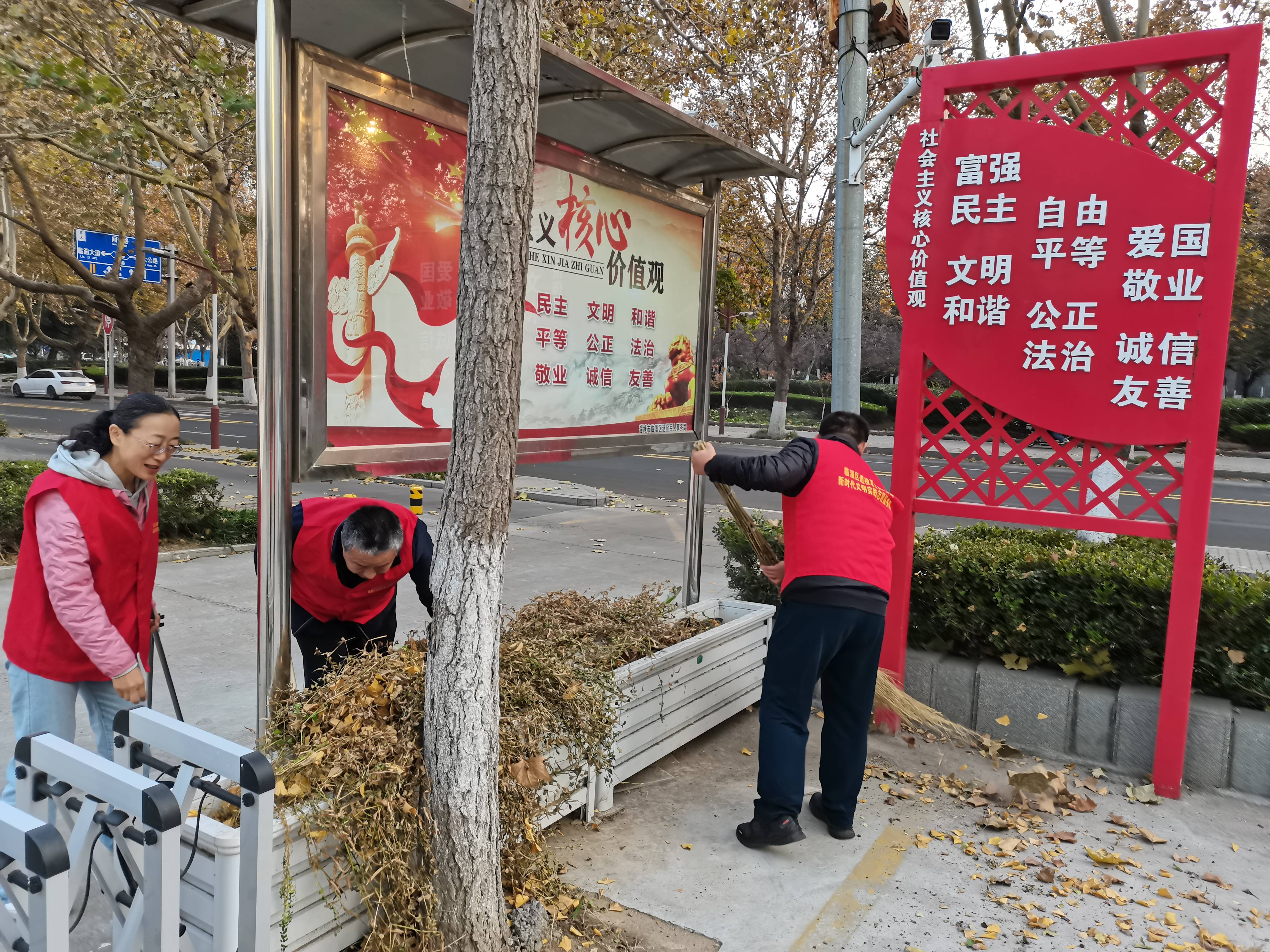 大家协助“双报到”社区清理楼道卫生、小广告,公共区域散乱垃圾、落叶等,开展创城问卷调查宣传、遛狗不牵绳劝阻引导活动;清理道路两侧及绿化带内积存垃圾、落叶、城市牛皮癣等,整理摆放乱停乱放非机动车、共享单车,清洁擦拭公交站亭、公益广告雕塑小品或其他户外公用设施等。