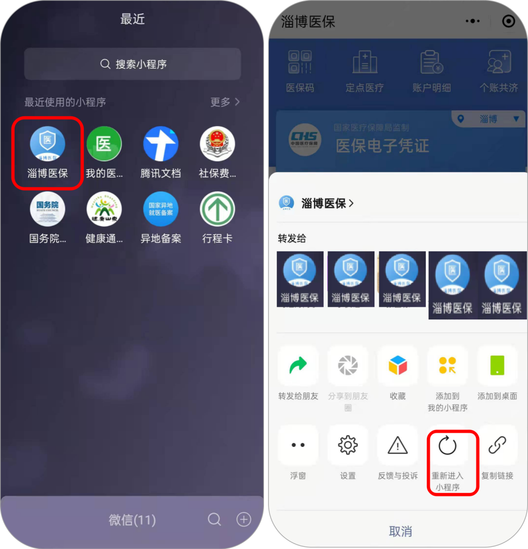 微信小程序搜索“淄博医保”,点击进入(如遇手机卡顿点击右上方按钮重新进入小程序),进行实名认证,激活医保电子凭证。