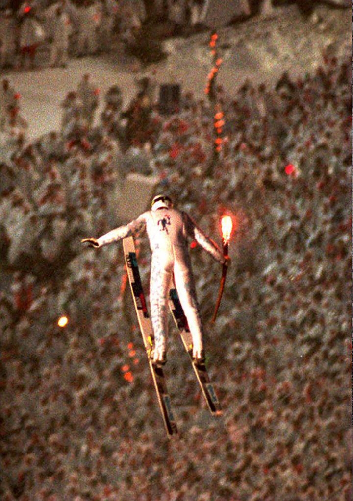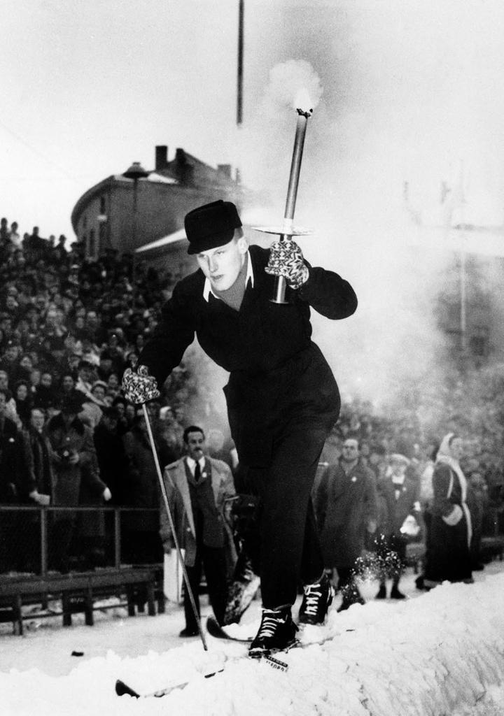 火炬手脚踩滑雪板缔造经典入场