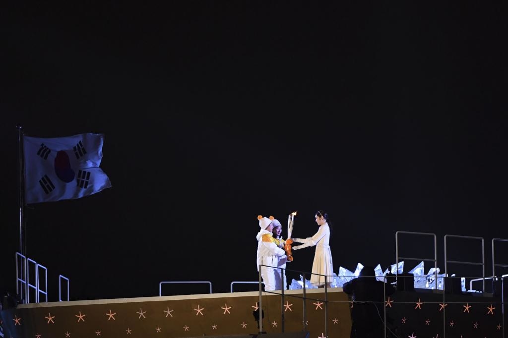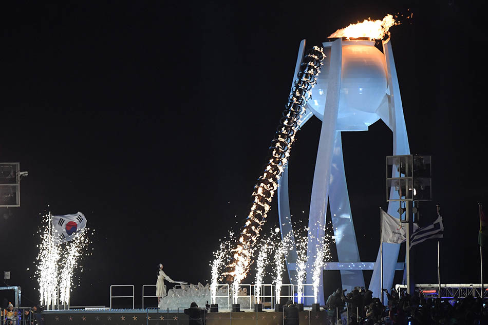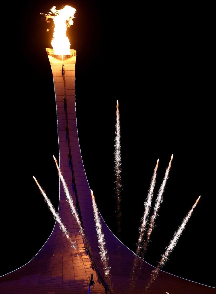 她点燃主火炬塔下的冰花