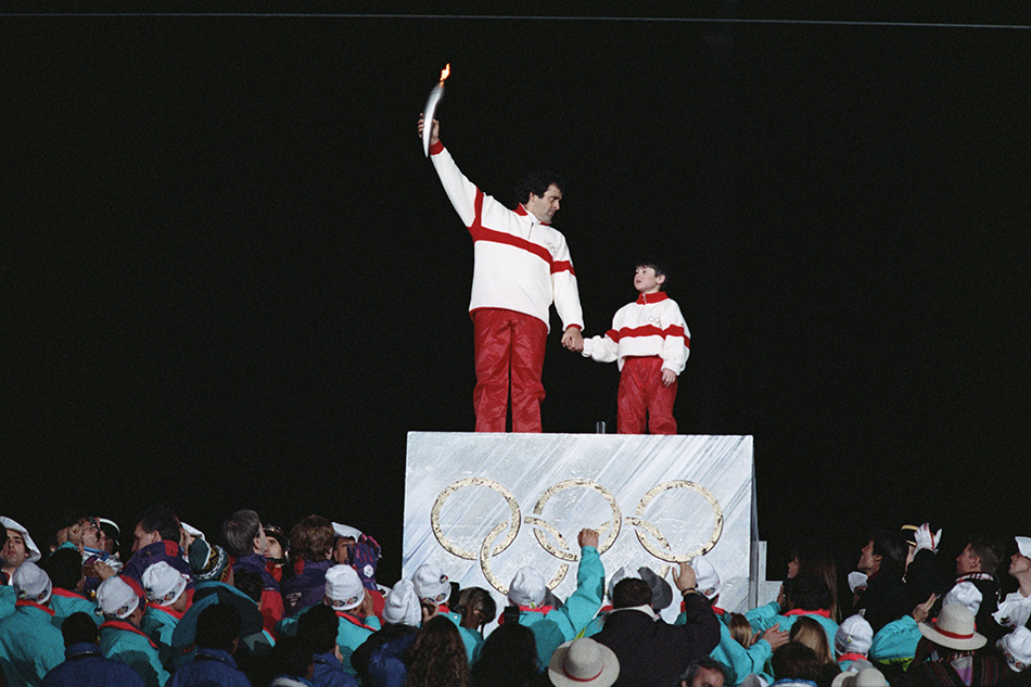 最终主火炬由球星普拉蒂尼和一名孩童共同点燃