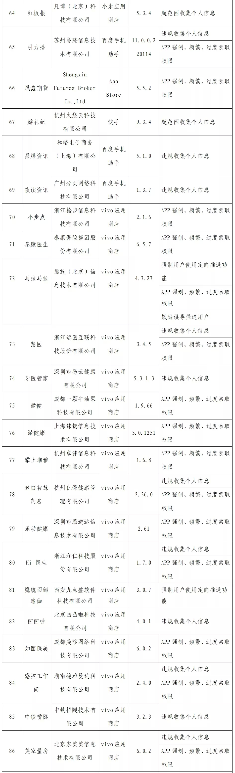 依据《个人信息保护法》《网络安全法》《电信条例》《电信和互联网用户个人信息保护规定》等法律法规,我部近期组织第三方检测机构对移动互联网应用程序(APP)进行检查,截至目前,尚有107款APP未完成整改。同时,检测过程中发现,13款内嵌第三方软件开发工具包(SDK)存在违规收集用户设备信息的行为。