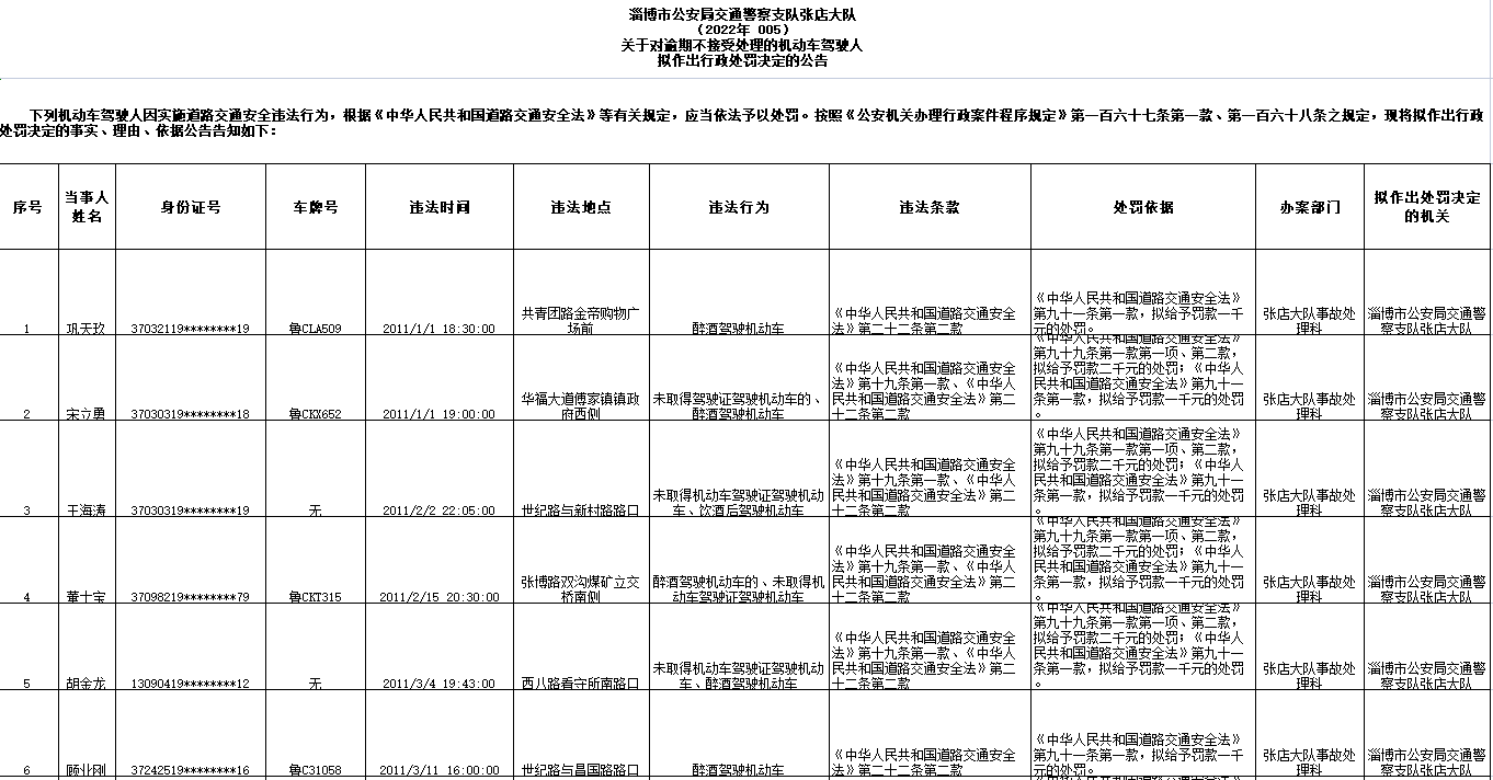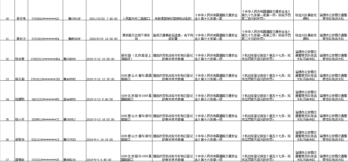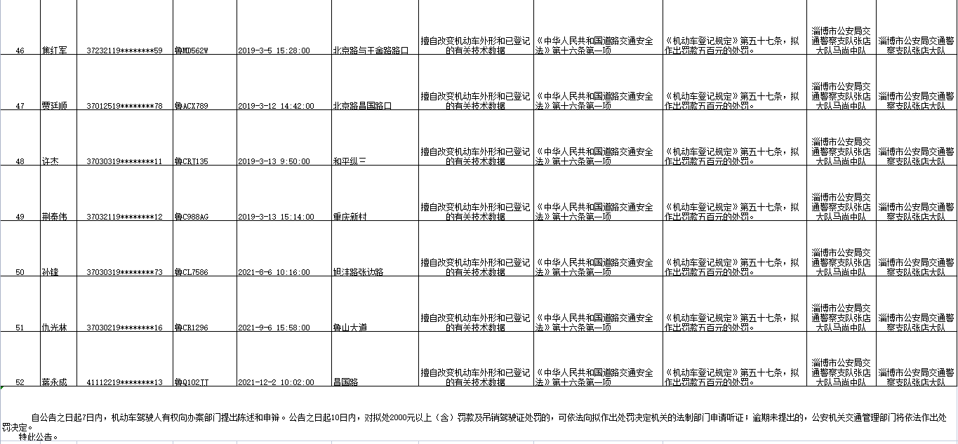 淄博市公安局交通警察支队张店大队发布《关于对逾期不接受处理的机动车驾驶人拟作出行政处罚决定的公告》(第十二批),对52名逾期不接受处理的机动车驾驶人拟作出行政处罚。