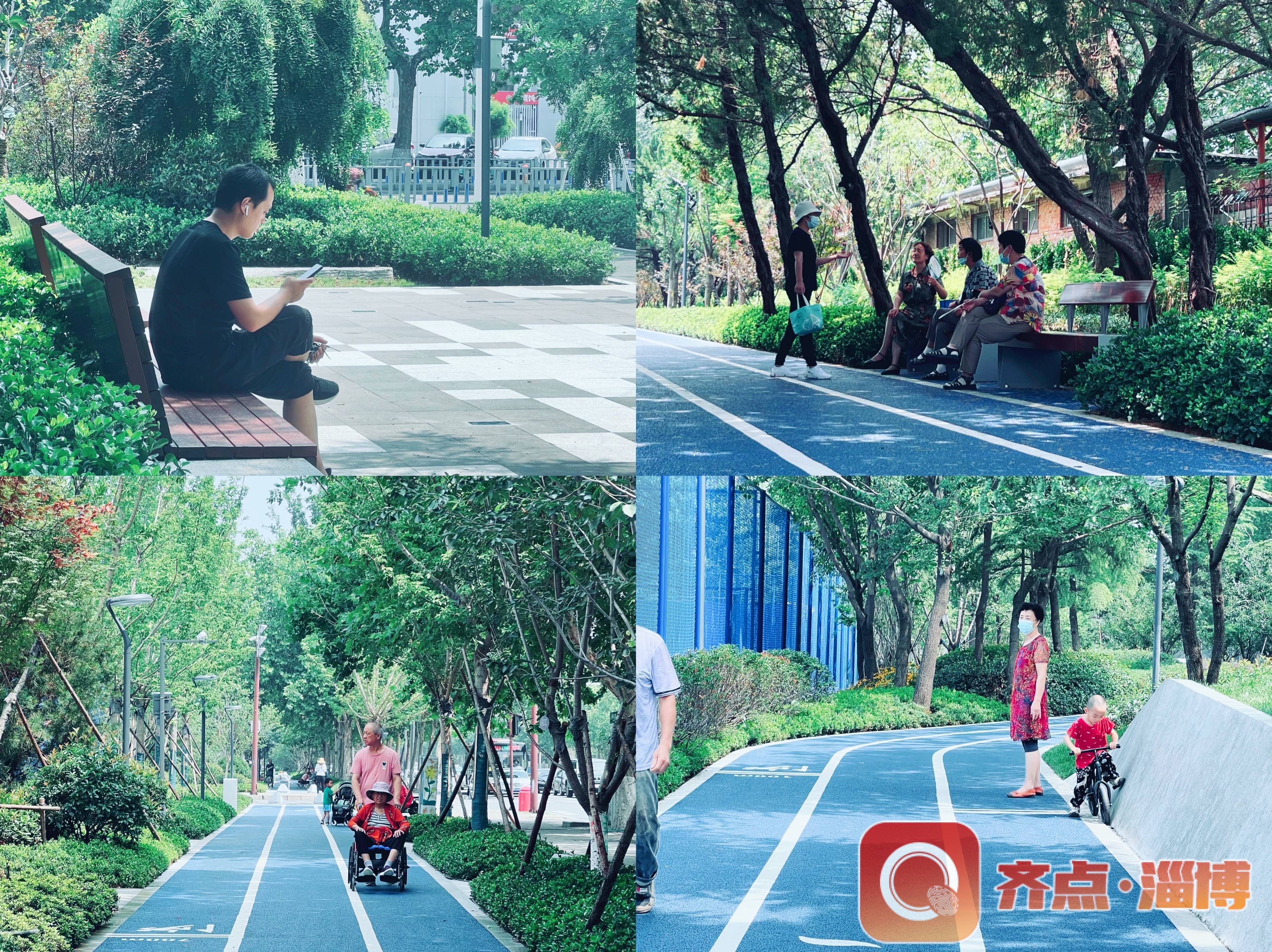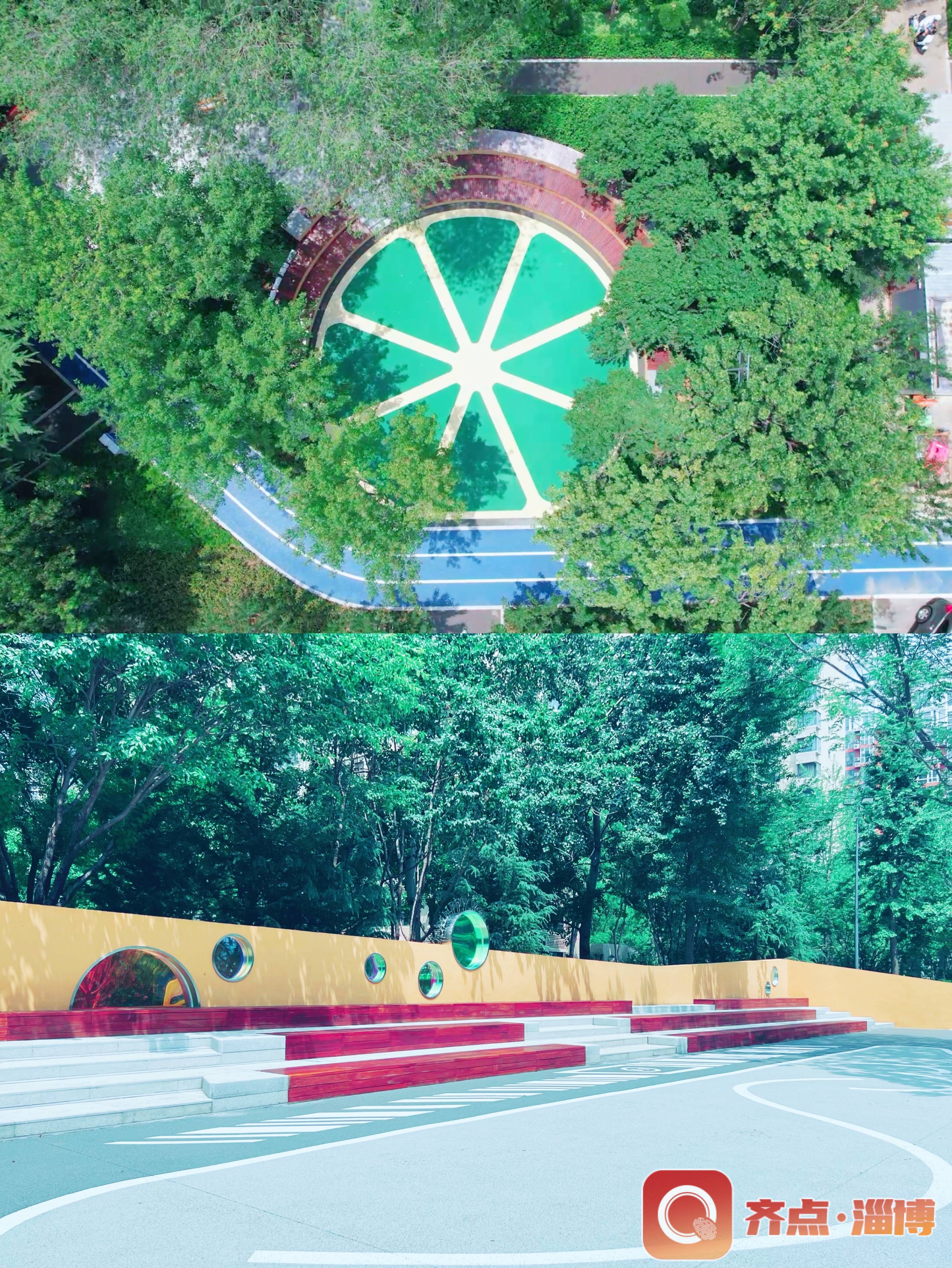 沿着路西新建的鱼子蓝色林荫步道漫步前行,提取自博山琉璃的鸡油黄色应用于各种场景中,随处可见淄博特色元素,颜色丰富的各种植被,划分清晰的功能区,这片区域已经华丽变身为一处功能齐全的口袋公园,休憩、散步、交往、游乐、乘凉、运动、健身,让市民足不出“城”,就能畅享“诗与远方”。