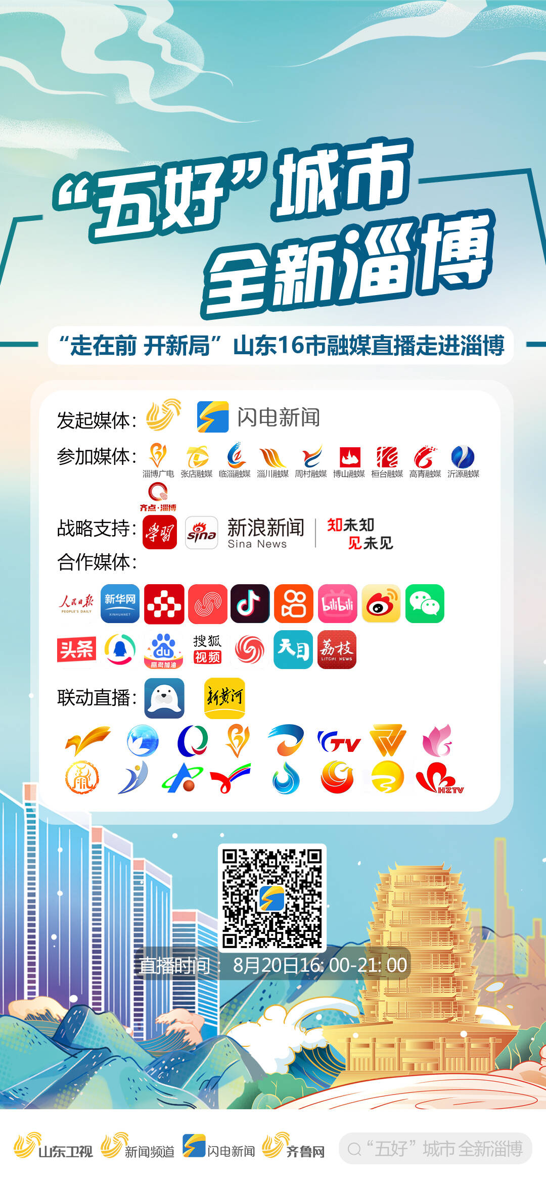 8月20日,直播第14站走进淄博,五个小时时间里将以泱泱齐风、“淄淄”不倦、“博博”生机、有“淄”有味四个篇章,带领大家穿越千年齐国故都,感受泱泱齐风;探访世界足球发源地,体验一场刺激的蹴鞠比赛;走进周村古商城, 感受历史与文化的积淀;走进山东好品,感受千年陶琉文化魅力;揭秘多种自动驾驶车型,体验“未来出行”黑科技;走进协作机器人智慧工厂,品尝一杯咖啡机器人制作的美味咖啡;畅游马踏湖,感受“北国江南”的诗情画意;打卡沂河源田园综合体,感受小山村里的艺术文化;解密听音乐、做按摩、 喝啤酒的高青黑牛;打卡“来了你就不想走”的网红点——唐库文创园以及创新创业、好吃好玩的鱼盐里……