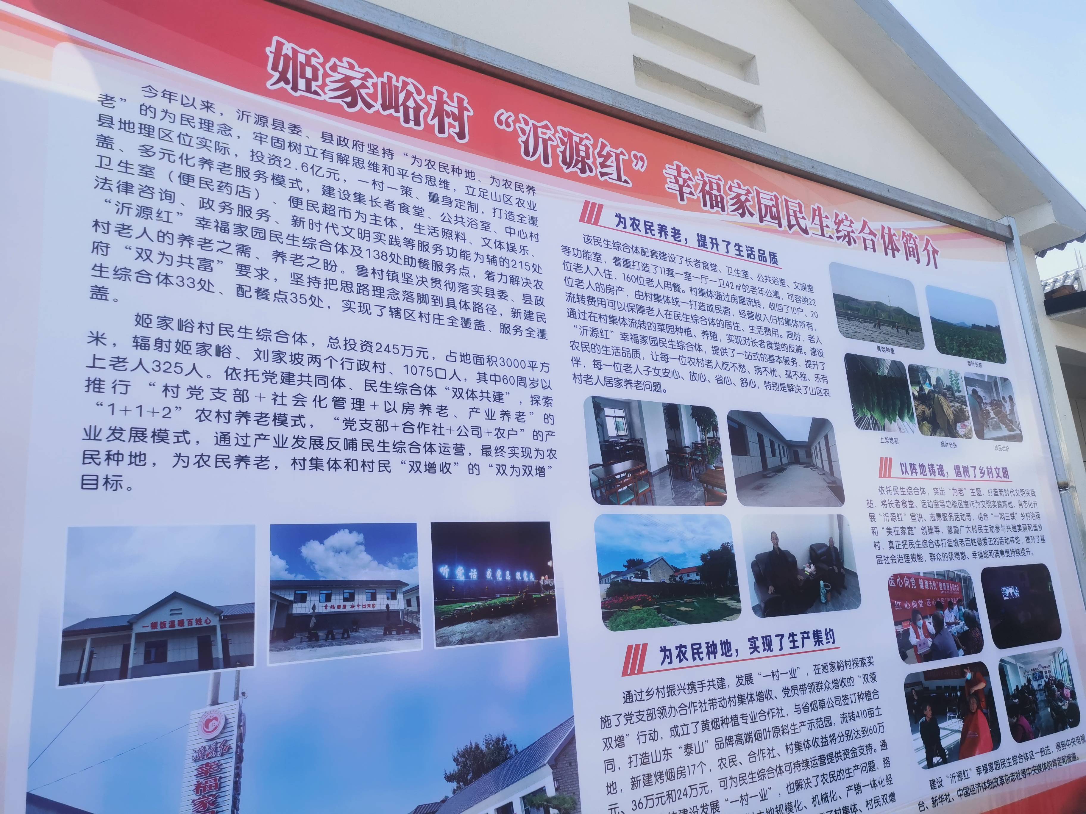 “沂源红”幸福家园民生综合体是该县2022年向群众承诺的“十大民生实事”之一,他们用了5个多月的时间,在山区全域建设了353处民生综合体、助餐服务点和1处中央厨房,实现了全县445个村服务功能全覆盖,让8.5万农村老人尽享家门口的品质民生,尽享改革发展带来的红利。他们充分发挥党建统领作用,协同推进党建共同体、民生综合体、产业联合体、治理融合体“四体共建”,将村级组织办公场所、老年驿站、法律调解等融入其中,引导群众在享受更优服务的同时,不断增强认同感和自豪感。通过统一运营、村办民营、村办公营和以地养老、以房养老、产业养老、医养结合等多种运营方式及养老模式,促进“老有所养”向“老有颐养”转变,推动“沂源红”民生综合体健康持续发展。