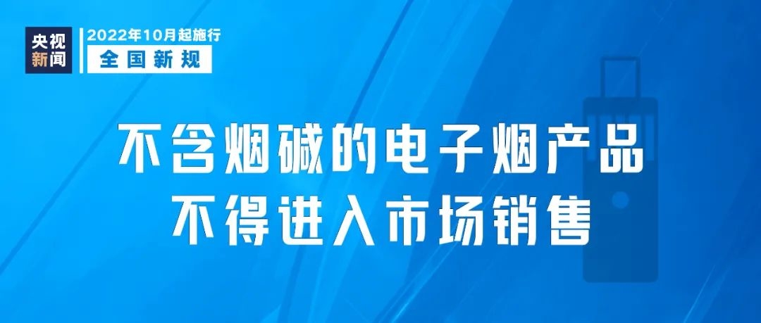 《电子烟》强制性国家标准10月1日起实施。鉴于水果、食品、饮料等调味电子烟和无烟碱电子烟对未成年人具有较强的吸引力,容易诱导未成年人吸食,标准明确规定不应使产品特征风味呈现除烟草外的其他风味,并明确要求“雾化物应含有烟碱”,即不含烟碱的电子烟产品不得进入市场销售。